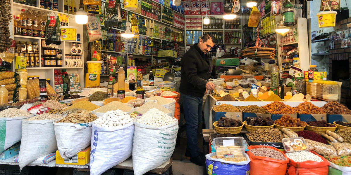 وێنەی کاسبکارێک لەنێو بازاڕی سلێمانی
