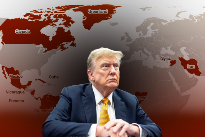 ڕۆژی چوارشەممە 7ی کانوونی دووەمی 2025 ماڵپەڕی ئەمریکی ئەکسیۆس لە ڕاپۆرتێکدا ڕایگەیاند؛ دۆناڵد ترەمپ بە هەرەشەی هێرشی سەربازی بۆ سەر وڵاتان، جیهانی خستۆتە ئامادەباشییەوە و لە ماوەی سەرۆکایەتییەکەشیدا هەرەشەی لە گریلاند، کەنەدا  و سووریا کردووە.